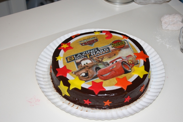 bolo branco com recheio de chocolate e cobertura de chocolate com decorações em açucar